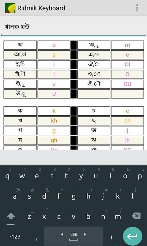 Best Ridmik Classic Keyboard for android app .A to Z